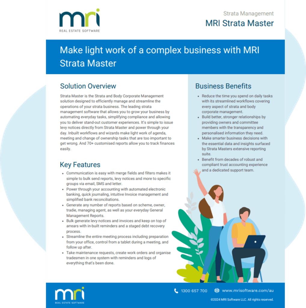 Strata Master is the Strata and Body Corporate Management solution designed to efficiently manage and streamline the operations of your strata business. The leading strata management software that allows you to grow your business by automating everyday tasks, simplifying compliance and allowing you to deliver stand-out customer experiences.