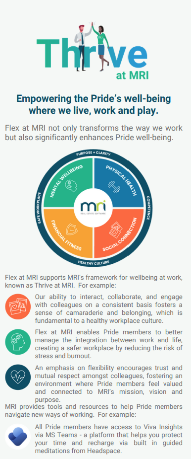 At MRI, we believe that flexibility is the key to a thriving workforce and successful future. The Flex at MRI program includes three different impactful benefits to help our Pride Members maintain a healthy work-life balance;