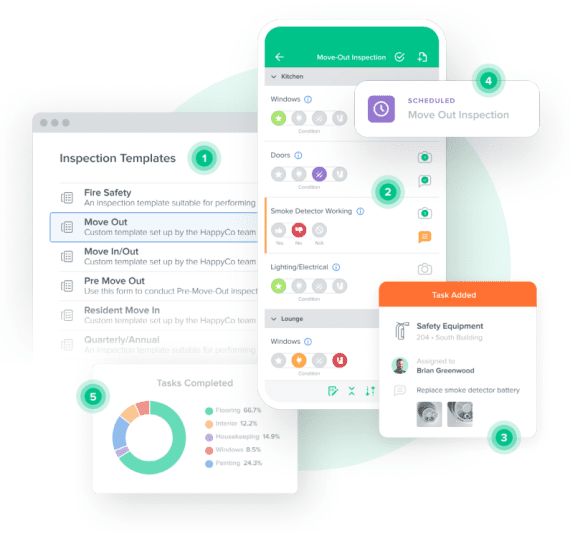 When a resident places a notice to vacate, HappyCo automatically creates a move out inspection. When you’ve found your new tenant, we’ll take care of scheduling their move in inspection. When the job’s done, the inspection report will sync back with MRI.