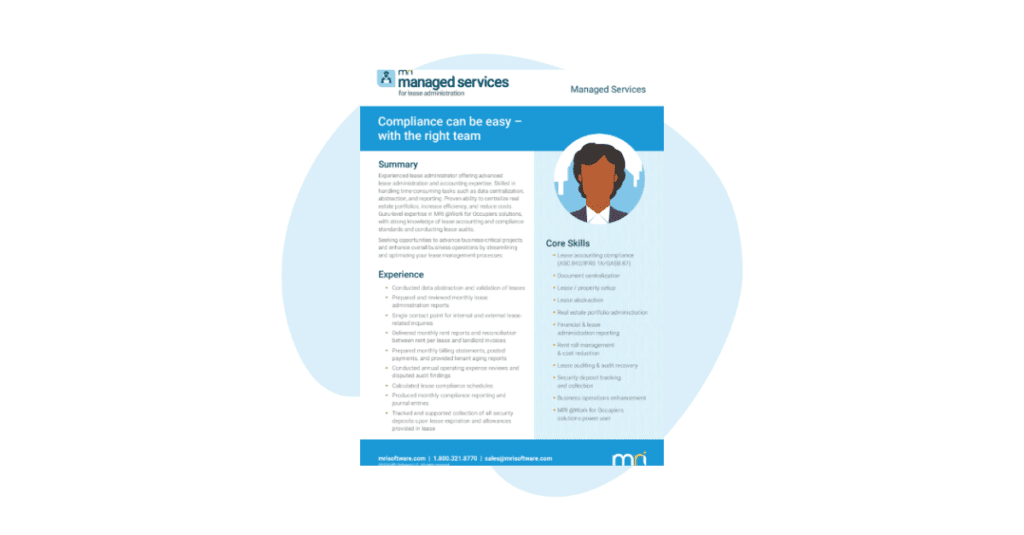 Experienced lease administrator offering advanced lease administration and accounting expertise. Skilled in handling time-consuming tasks such as data centralization, abstraction, and reporting. Proven ability to centralize real estate portfolios, increase efficiency, and reduce costs.