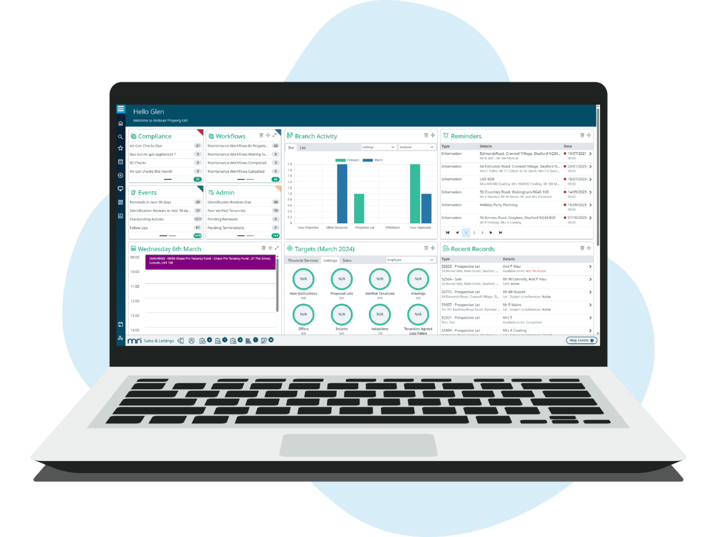 Boost individual, team, and branch productivity with automated alerts covering sales, letting, property management and accounting activity. Configure your hub using hundreds of activity types from email marketing to viewing appointments, lease events to maintenance checks, survey bookings to sales letters.